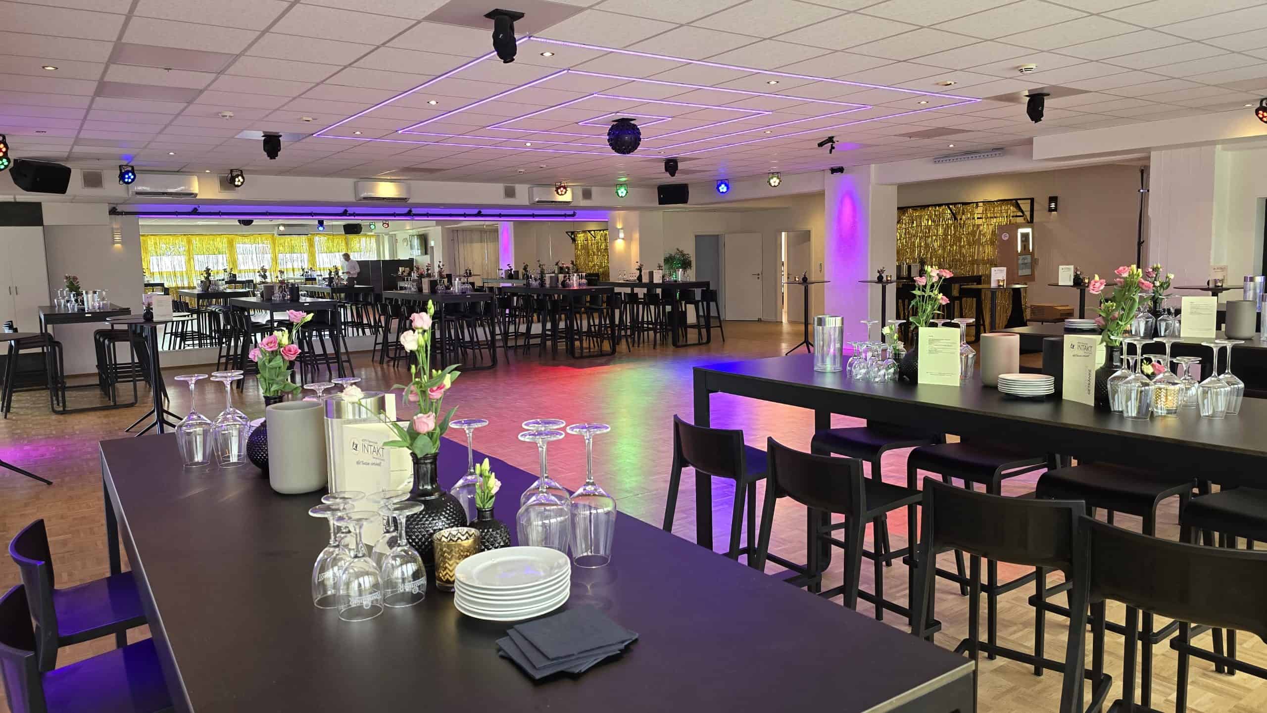 INTAKT bietet Ihnen die ideale Eventlocation für private Feiern, Hochzeiten, Firmenveranstaltungen und mehr. Unser moderner und voll klimatisierter Veranstaltungsraum bietet Platz für bis zu 160 Gäste und ist komplett mit modernster Licht- und Tontechnik ausgestattet.